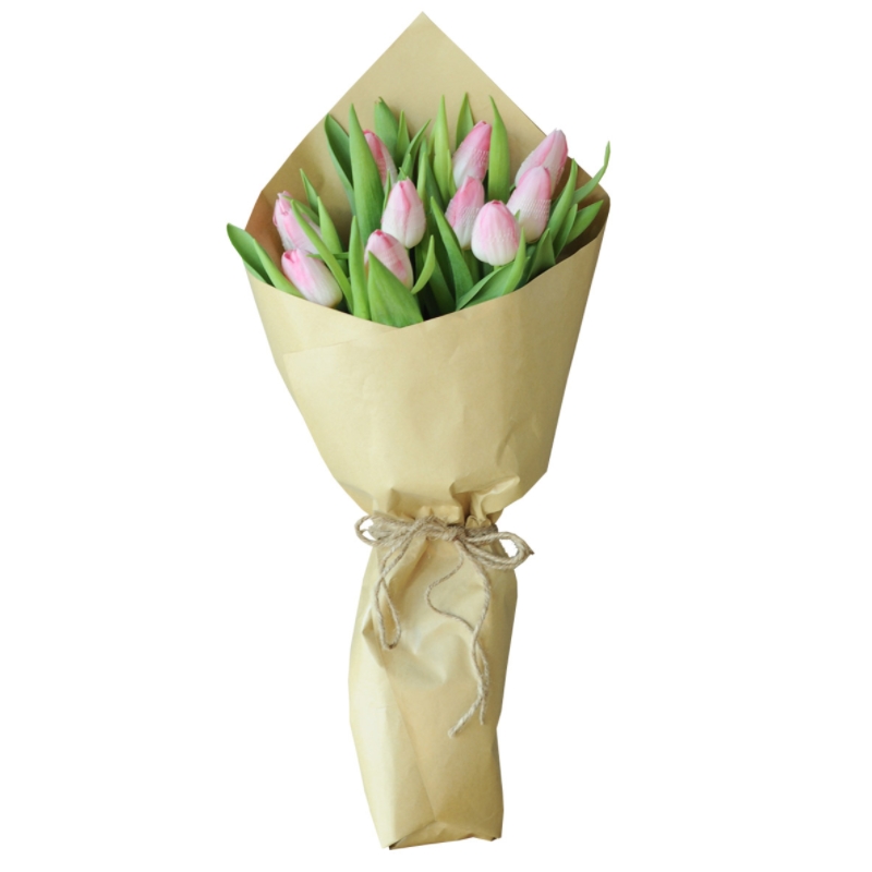 Букет из 9 розовых тюльпанов в крафте