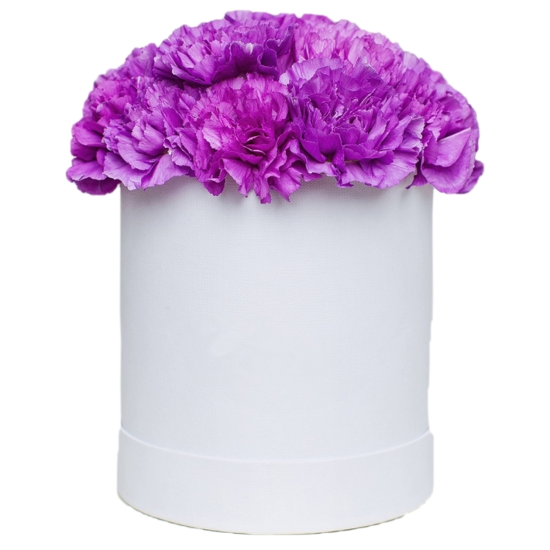 Букет из 21 сиреневой гвоздики в коробке