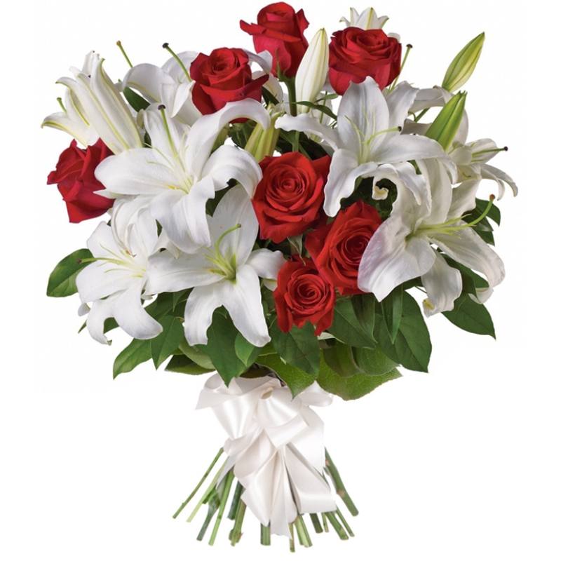 Букет из белых лилий и красны хроз