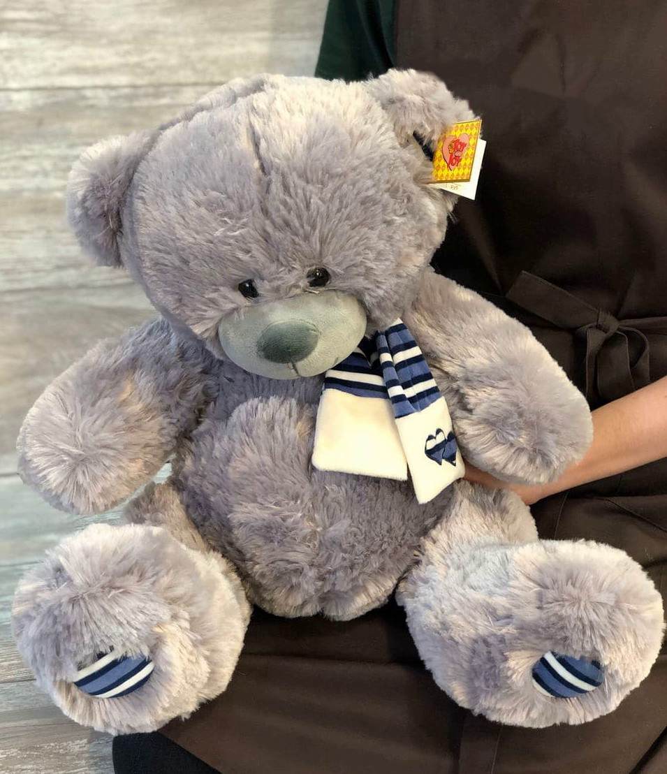 Игрушка Медведя серый с шарфом. Для дополнения к цветам, и для индивидуального подарка!