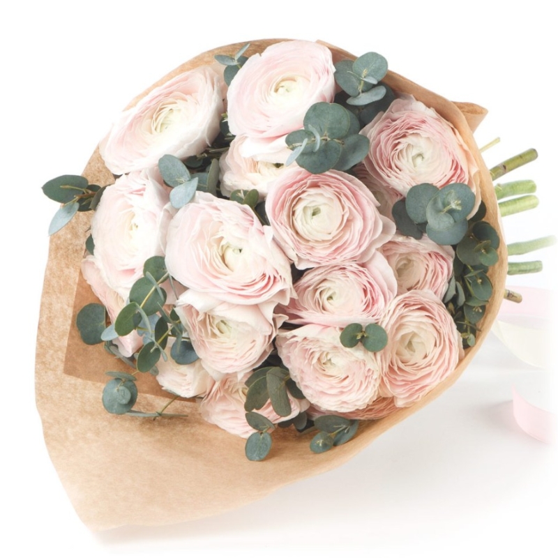 Букет из 19 розовых ранункулюсов в крафте