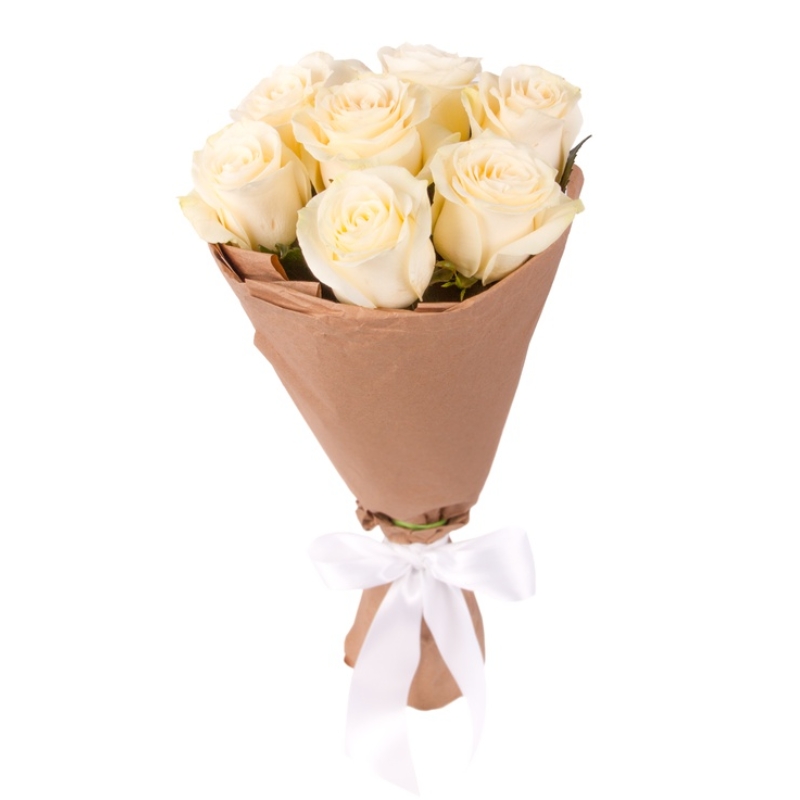 Букет из 7 белых роз в крафте