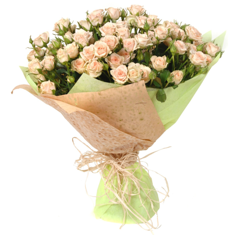 Букет состоит из 21 ветка кремовой кустовой розы, красивая упаковка.